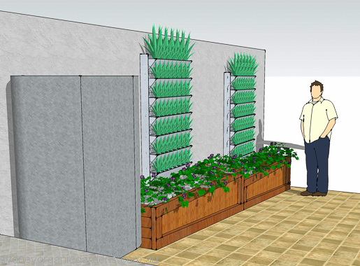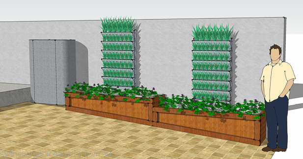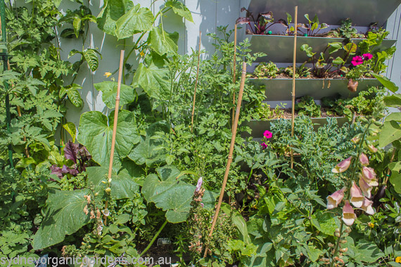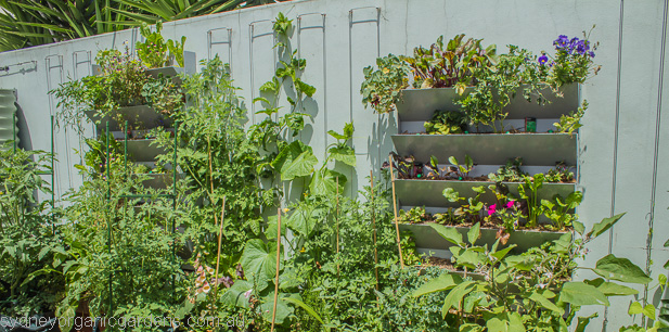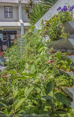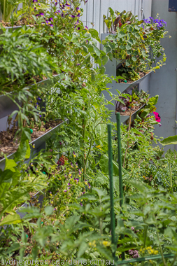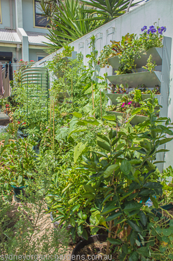 “The vertical garden Steve created is an absolute delight – and so productive. The watering system works well and is sourced from rainwater from the house roof. An empty parking space has been transformed into a hotbed of vegetable production – peas, beans, cucumbers, aubergines, tomatoes, kale, spinach and all manner of herbs.”