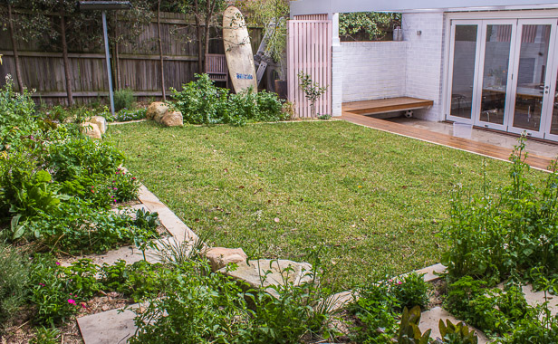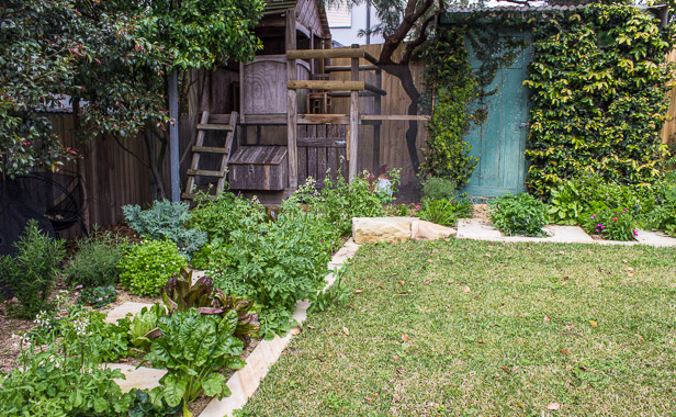 The chooks in this garden inhabit the understorey of a retrofitted cubby and enjoy the view over their families productive garden. Simple clean design with piano key stepping stones for access allow for children's play and plenty of organic food to eat.